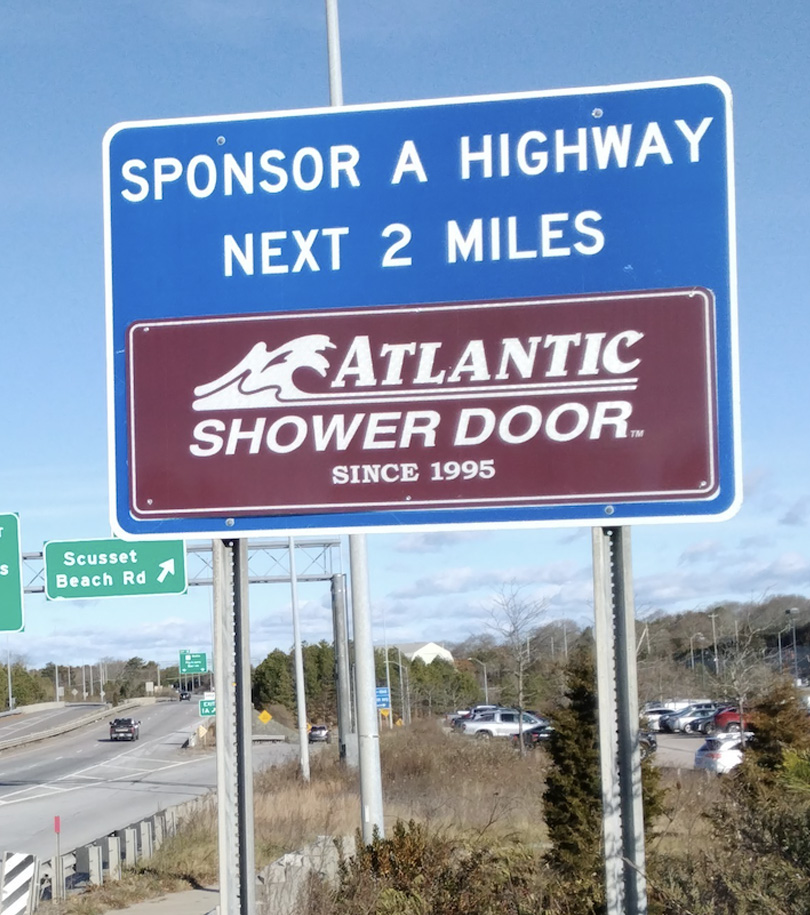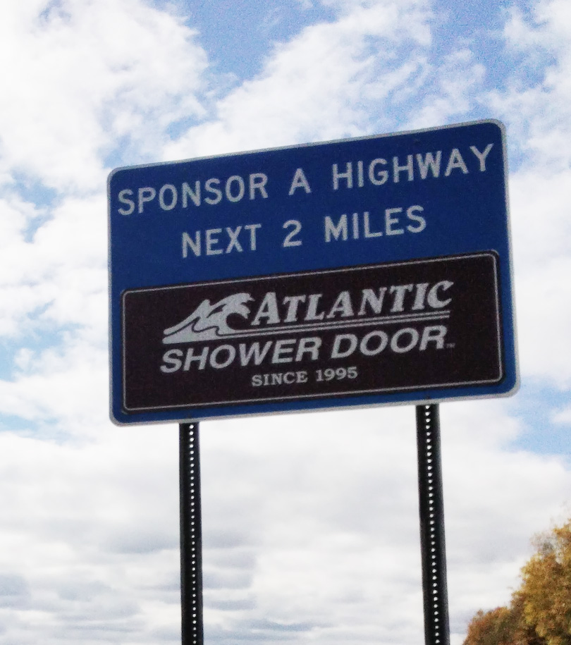 ATLANTIC SHOWER DOOR IS A PROUD SPONSOR OF THE ADOPT A HIGHWAY PROGRAM.